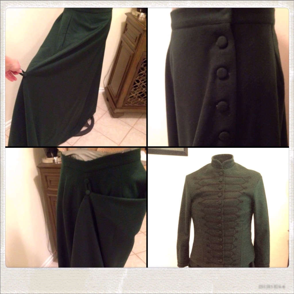 After Land Run (not included in the previous blog) I set to getting a surprise job done for Annie D Vine. Her 1880-1890's riding habit in a Kelly green Melton Wool. Hawkshaw Fred and I had discussed the making of this for Annie's birthday without her knowledge which made me slightly nervous as we had only briefly discussed colour and thrown a couple of pictures her way.