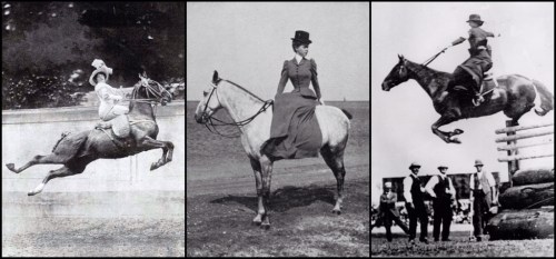 Maybe I'll see her doing some riding like this? Or not! From what I've briefly read, it took 2 men to get a lady up on her side saddle and there were many injuries and issues with restraining your horse BUT these are true pictures of women jumping their horses side saddle! Incredible.