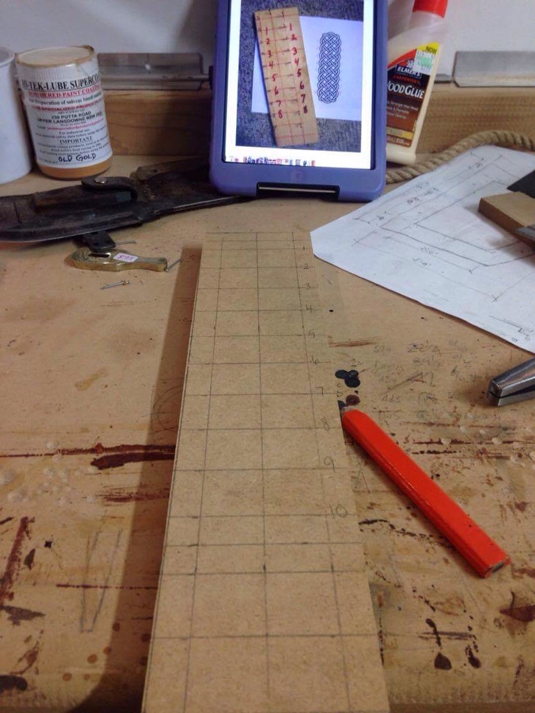 Step 3 – draw up (a presumed) 1″ grid on piece of timber as per picture. Got it! Sorted!