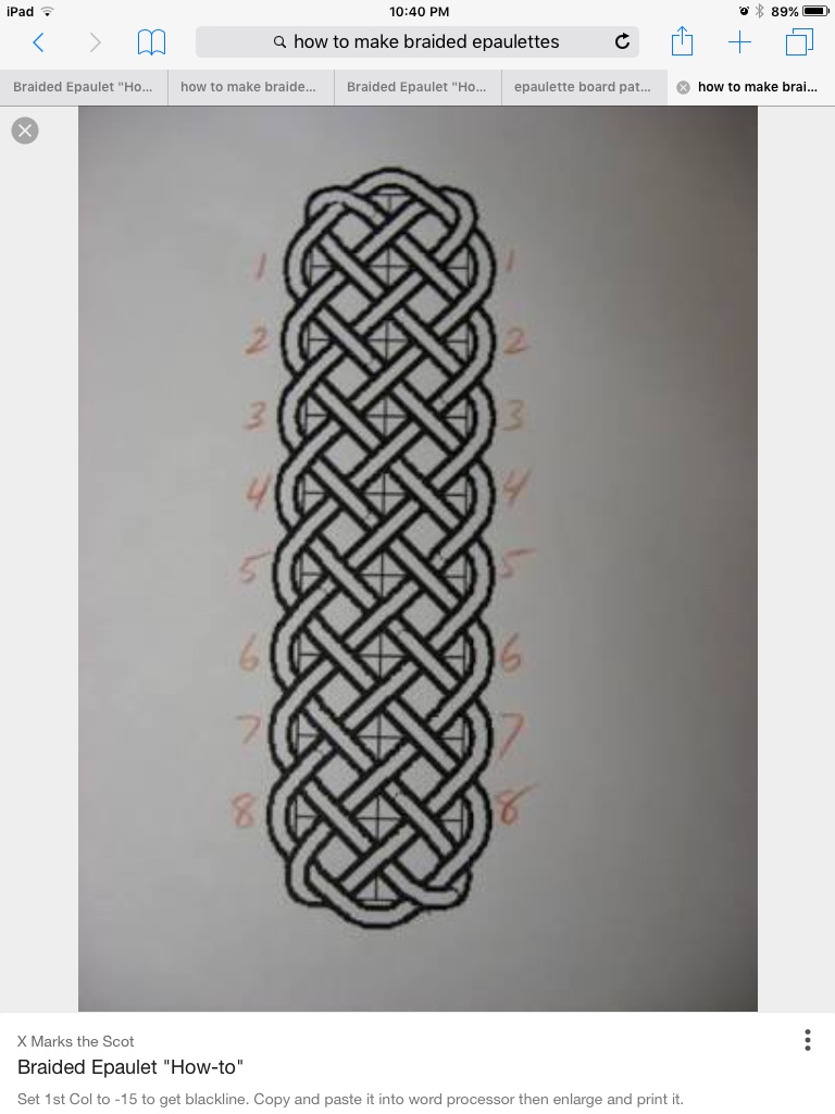 Next I needed matching military braids. How am I going to make these? Back to google I go, found a link and a YouTube video by Tieing It All Together. You ripper, here we go!