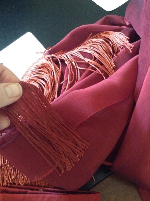 Fabric acquired. Fringing acquired………supposed to be cranberry. 😦