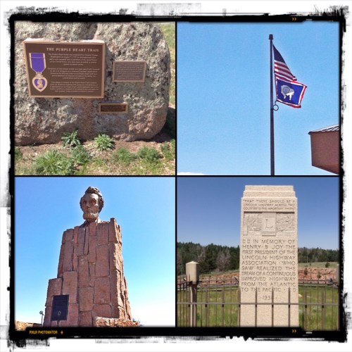 Here at the rest area is the memorial stone for Henry B. Joy and a monument commemorating Abraham Lincoln's 150th birthday. The bronze statue of Lincoln's head weighs 4,500 pounds and is 13.5ft tall sitting aloft its hollow granite base. It is situated at the highest point along the I-80 at its highest point of elevation 8640ft.