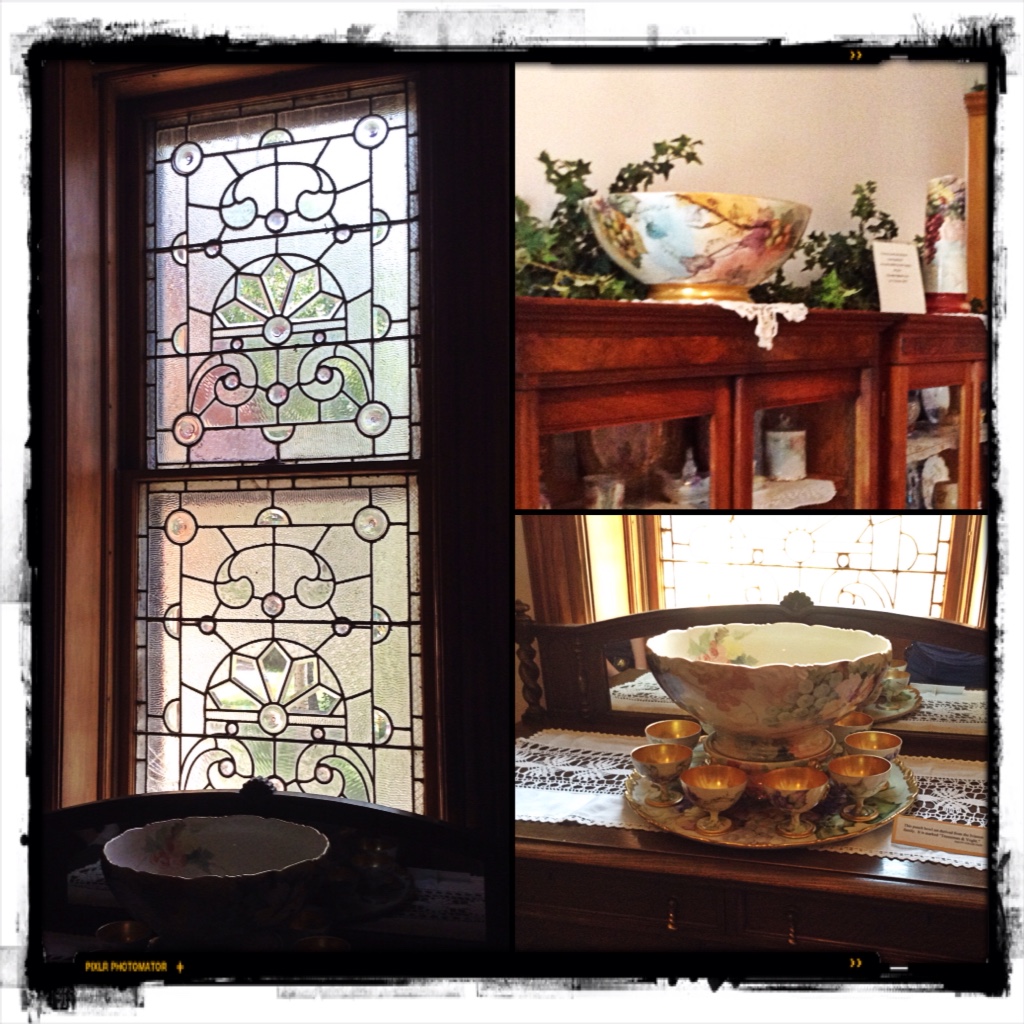 The butlers pantry windows are original to the home as is the punch bowl and pitcher on top of the cabinet, a replica has been recreated so the others are not damaged.